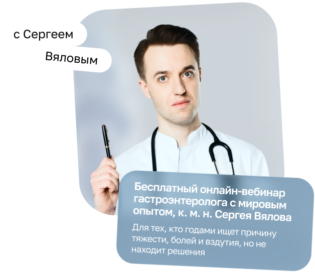 Автор вебинара - Сергей Вялов: "На вебинаре я покажу, как расшифровать сигналы органов ЖКТ, почему СРК и гастрит — не приговор и что делать, чтобы восстановить ЖКТ комплексно".